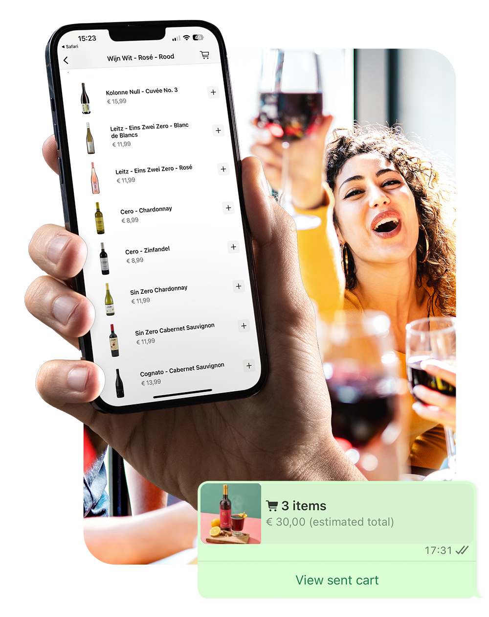 You can show the entire range in a store on WhatsApp. You can also include composite drink packages, such as 3 special whiskies, 3 wines from the same country or region or a mix package of a number of rosé wines in the summer. With OrderLemon you have complete flexibility.